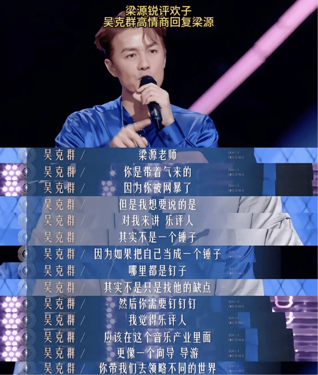 对于热度和流量,吴克群的理解是:“热度是你心跳加快时的血液温度,流量是让你实正落泪,让你的眼中潮湿的那些泪水才是流量。”